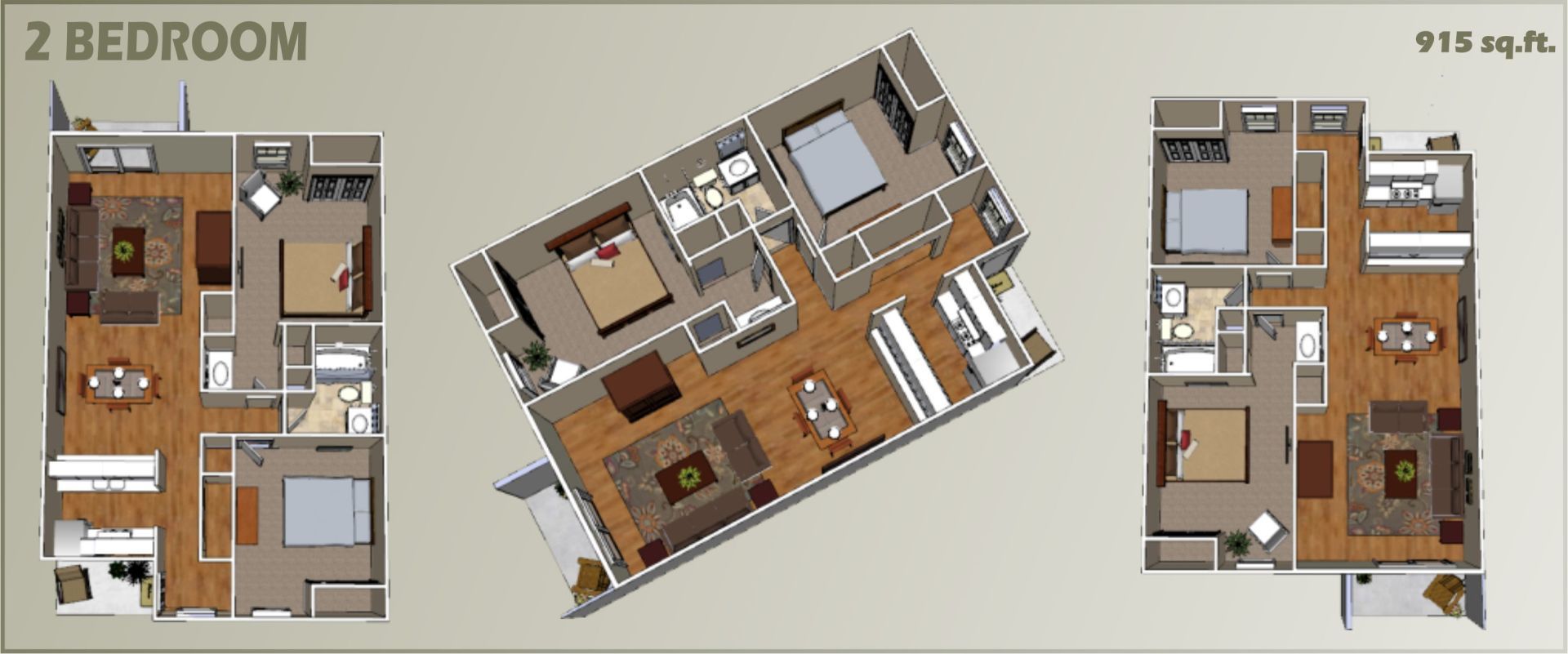 - 2 Bed / 1 Bath 915 Sq. Ft.