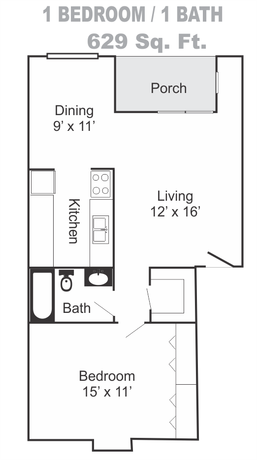 - 1 Bed / 1 Bath Sm 629 Sq.Ft.