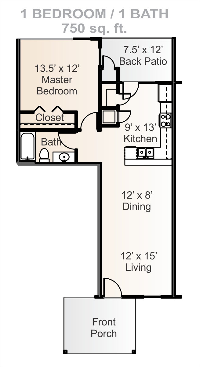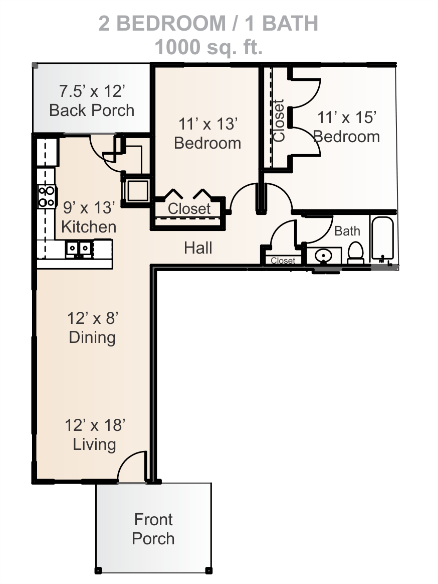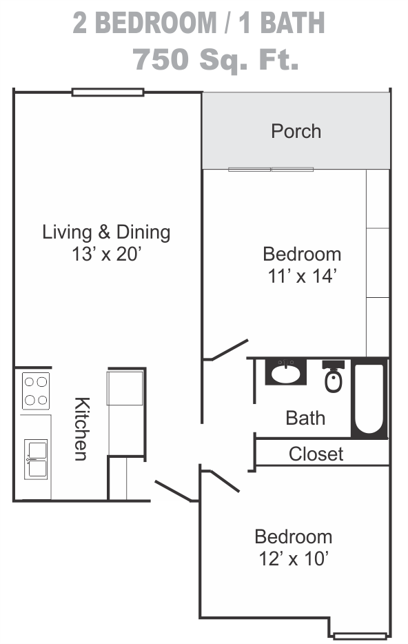 - 2 Bed / 1 Bath Sm 750 Sq. Ft.