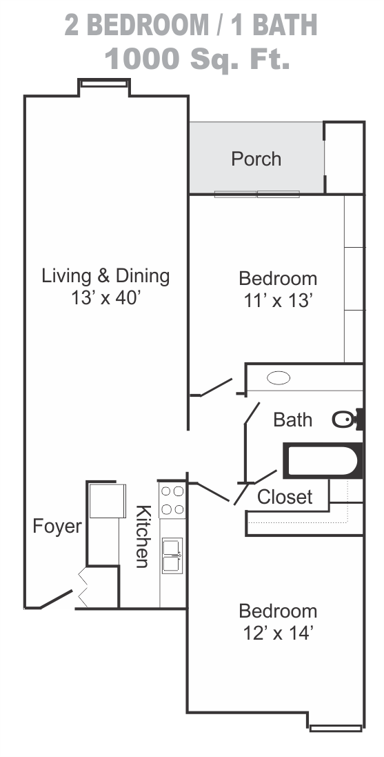- 2 Bed / 1 Bath Lg 1000 Sq. Ft.
