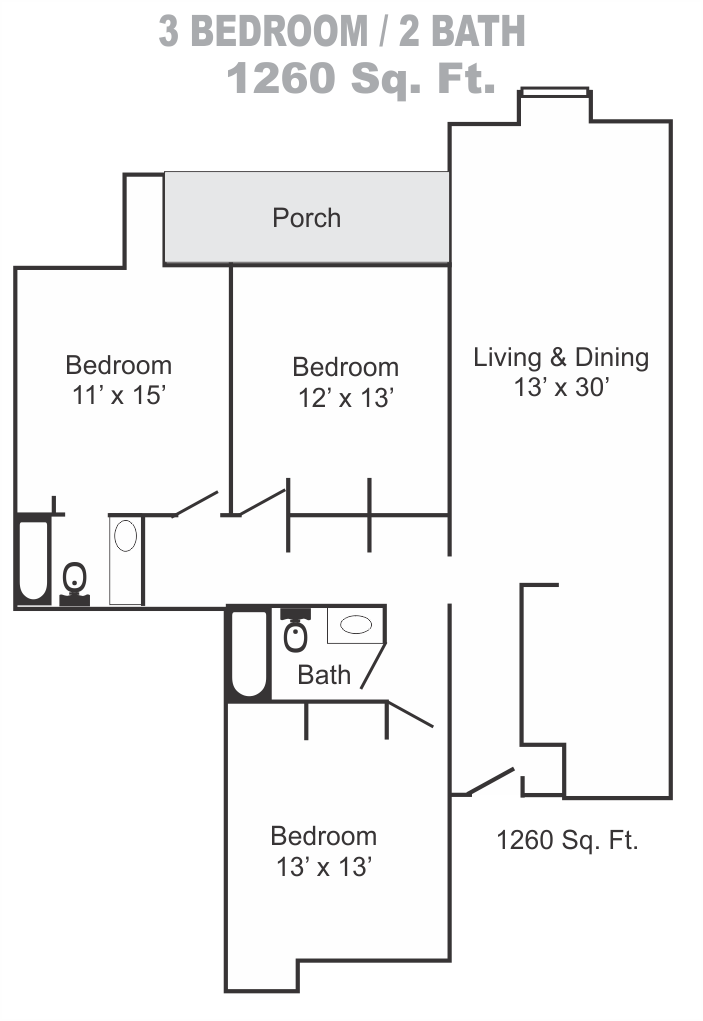- 3 Bed / 2 Bath 1260 Sq. Ft